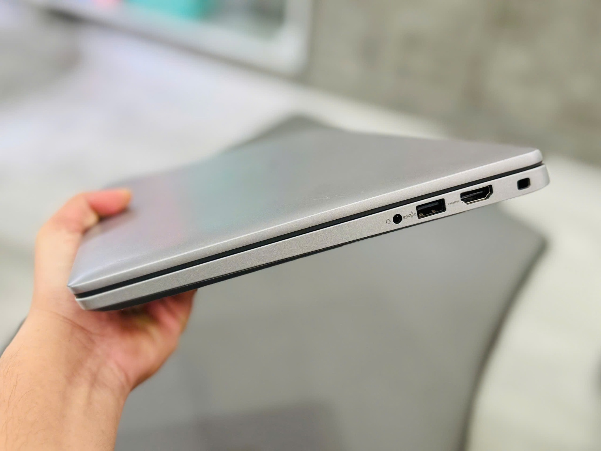 Với trọng lượng chỉ từ 1.39 kg và độ dày khoảng 19mm, thiết bị vẫn đảm bảo tính di động cao, giúp người dùng dễ dàng bỏ vào balo và di chuyển giữa các cuộc họp, văn phòng hay quán cà phê mà không cảm thấy cồng kềnh. Vỏ máy được phủ một lớp sơn nhám mờ màu xám titan (Titan Gray) thanh lịch, chống bám vân tay cực tốt, giữ cho chiếc máy luôn giữ được vẻ ngoài chuyên nghiệp.