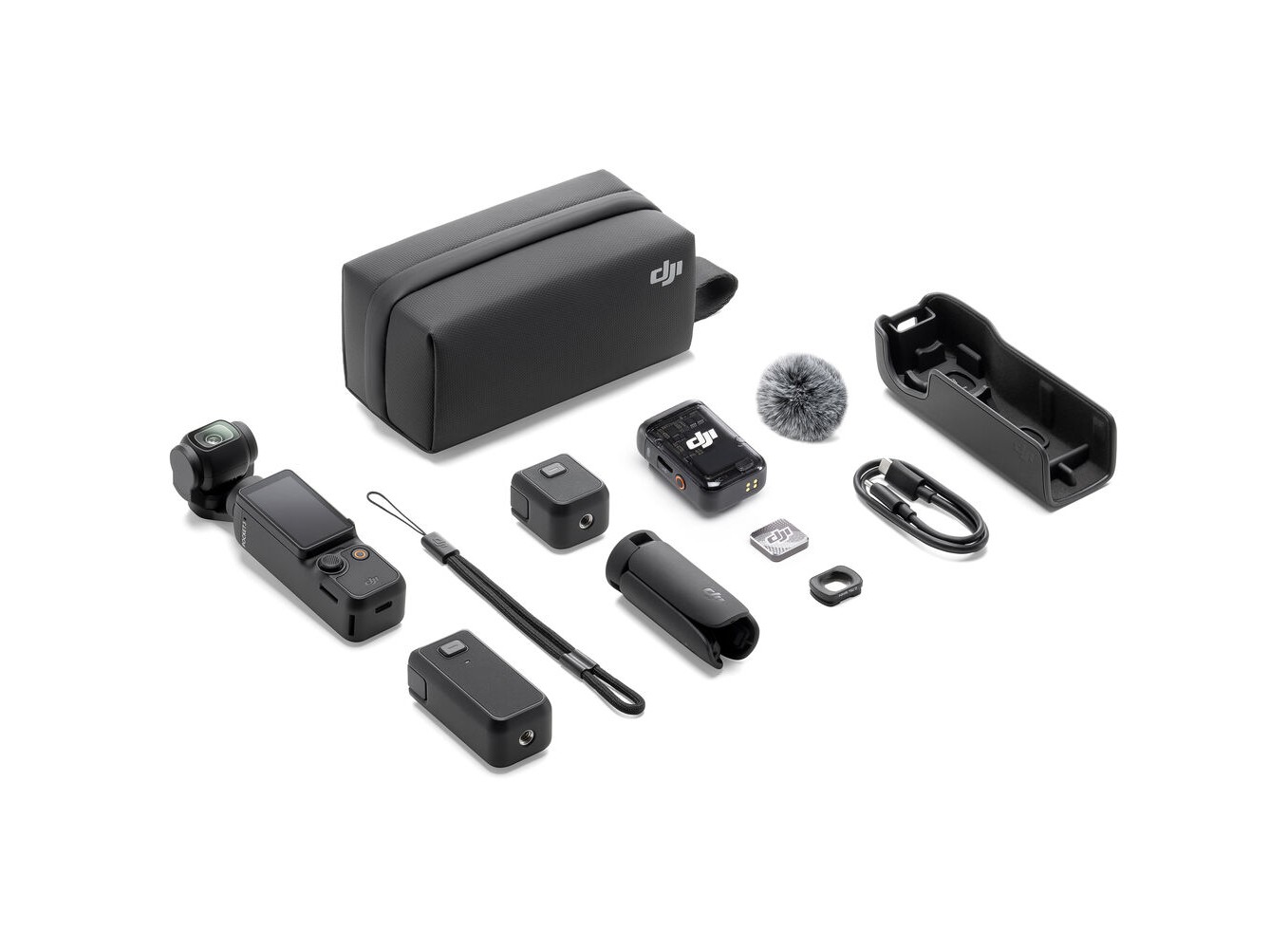 - Phiên bản Creator Combo kèm thêm bộ phát DJI Mic 2, ống kính góc rộng, báng pin, mini tripod, túi đựng