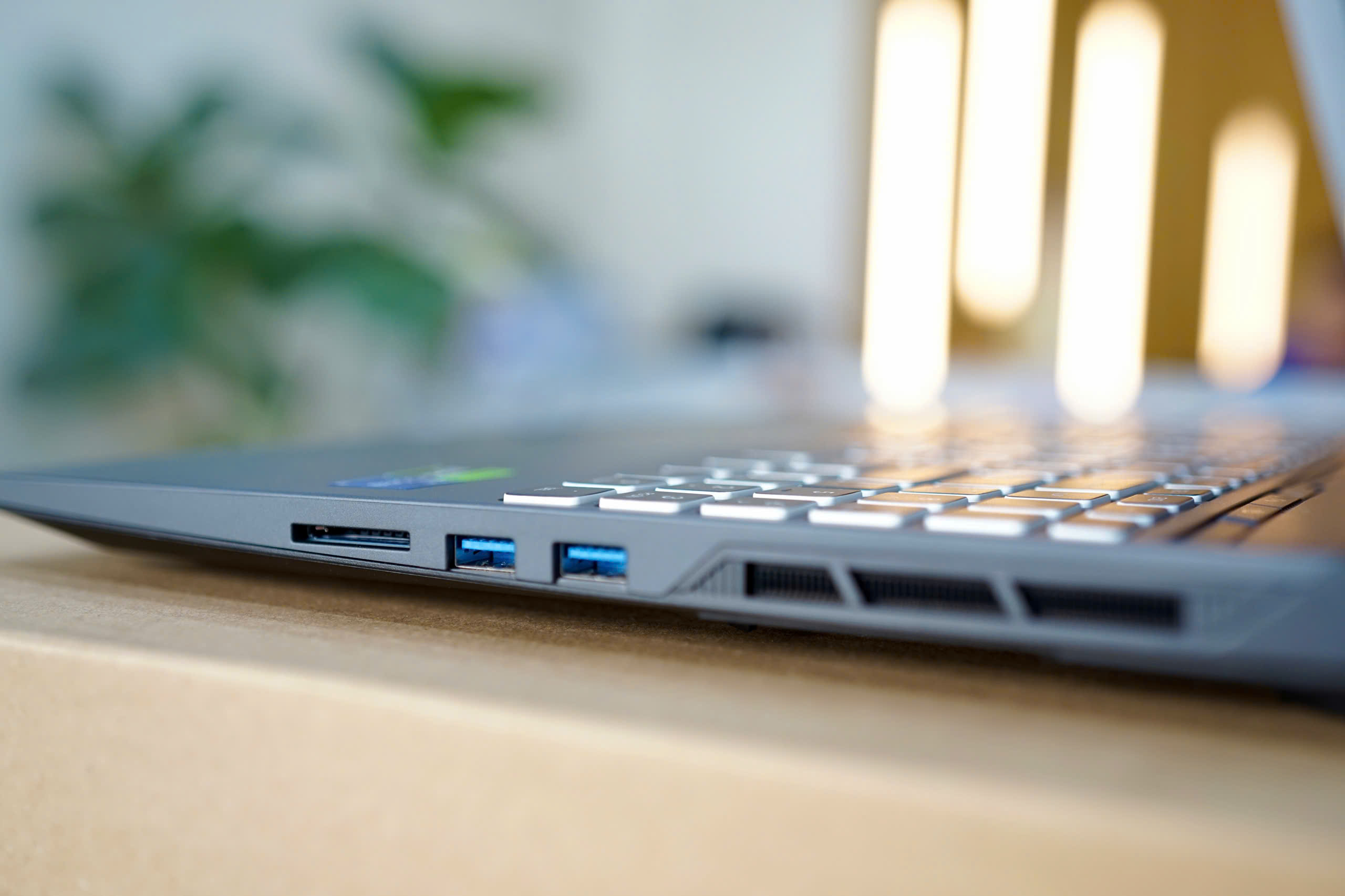 | PORTS | 2x USB Type-C (hỗ trợ Thunderbolt 4 DisplayPort, Power Delivery), 1x USB-A 3.2 Gen 2 (hỗ trợ sạc) 2x USB-A 3.2 Gen 2 1x HDMI 2.1, 1x RJ45 (2.5 Gigabit Ethernet) 1x khe đọc thẻ MicroSD 1x Jack tai nghe/mic 3.5mm |
