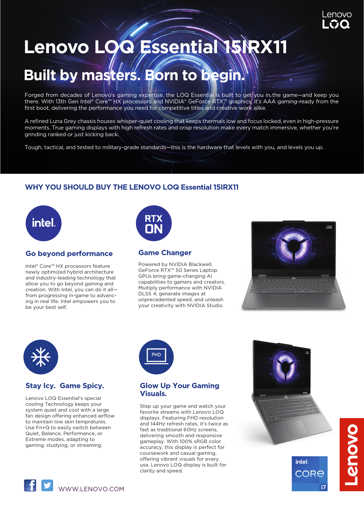 Laptop Lenovo LOQ Essential 15IRX11 83SC003RVN Core I5 13450HX 16GB 512GB RTX 5050 8GB FHD