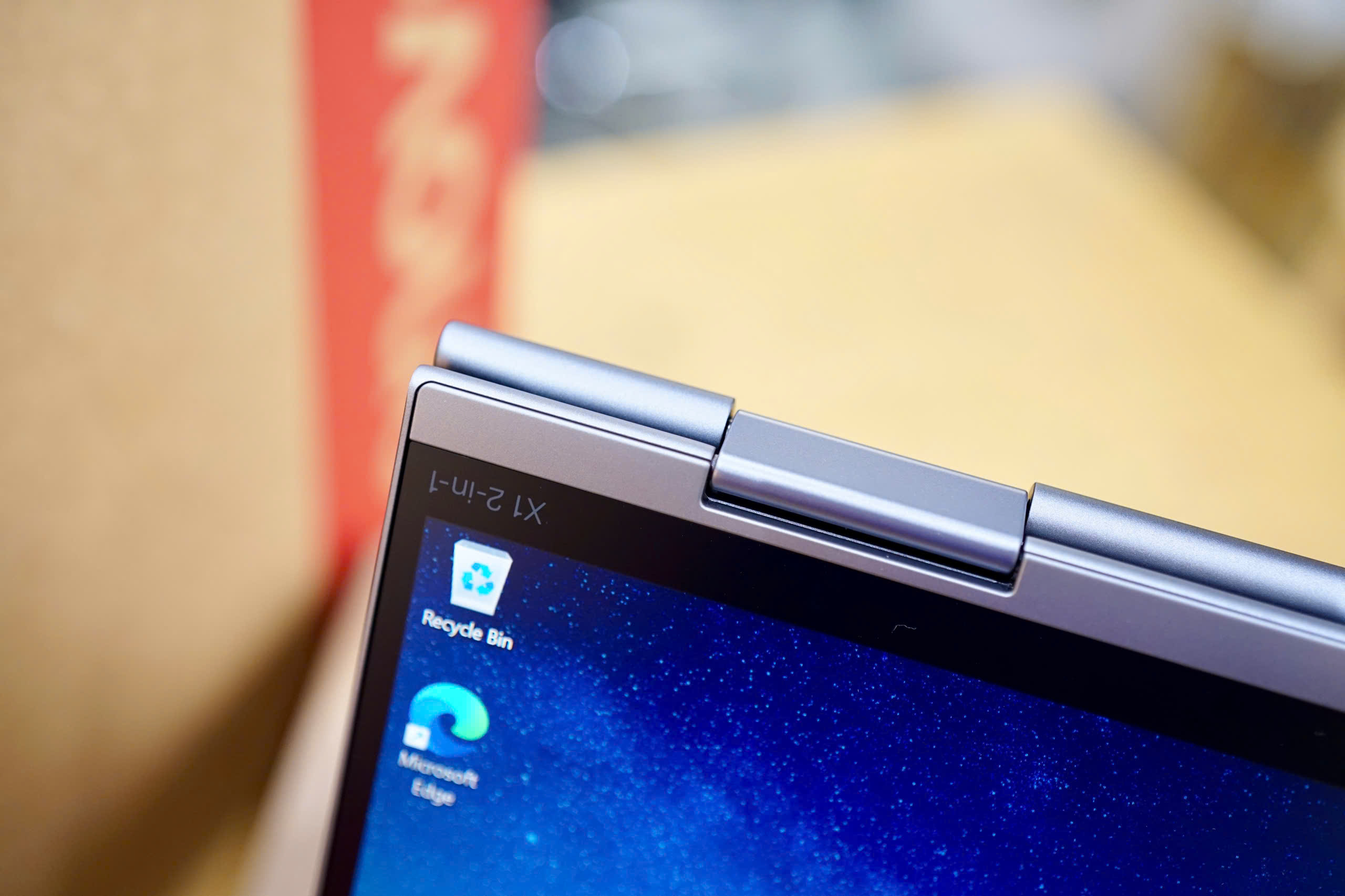 Điểm nhấn đặc trưng của dòng "2-in-1" chính là bản lề 360 độ linh hoạt, cho phép bạn dễ dàng chuyển đổi giữa các chế độ sử dụng: laptop truyền thống, chế độ lều (tent) để trình chiếu, chế độ máy tính bảng (tablet) để phác thảo hoặc ghi chú. Dù cấu trúc bản lề có vẻ hơi "lỏng" hơn một chút so với kỳ vọng trên một số mẫu, nhìn chung nó vẫn vận hành trơn tru và chắc chắn.